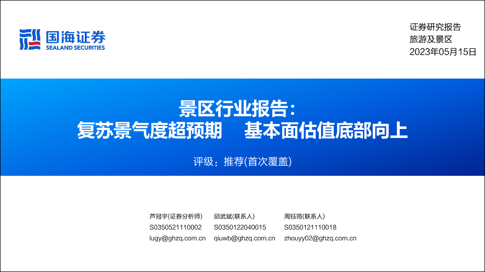 【国海证券】【20230515】景区行业报告:复苏景气度超预期 基本面估值底部向上-34页