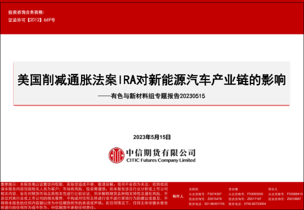 【中信期货】【20230515】美国削减通胀法案IRA对新能源汽车产业链的影响-34页