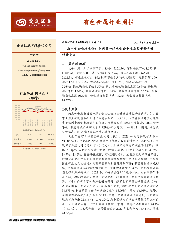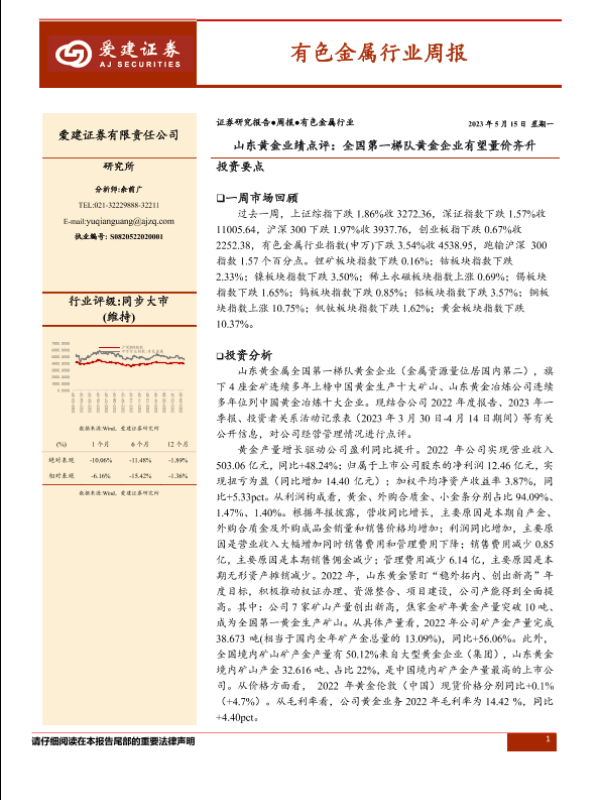 【爱建证券】【20230515】有色金属行业周报:山东黄金业绩点评:全国第一梯队黄金企业有望量价齐升-39页