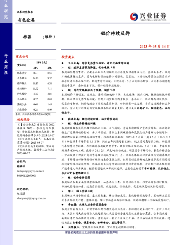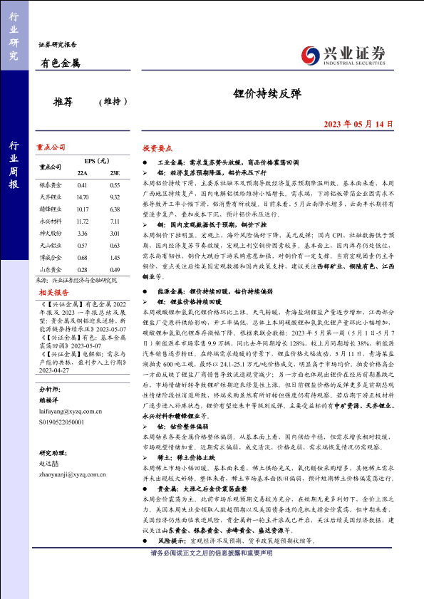 【兴业证券】【20230514】有色金属行业周报:锂价持续反弹-21页
