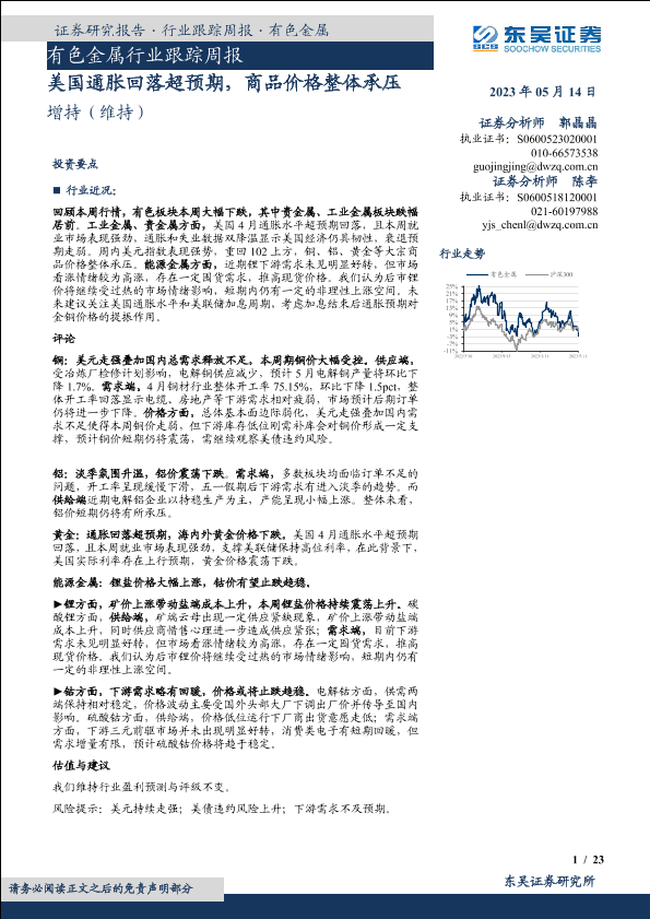 【东吴证券】【20230514】有色金属行业跟踪周报:美国通胀回落超预期,商品价格整体承压-23页
