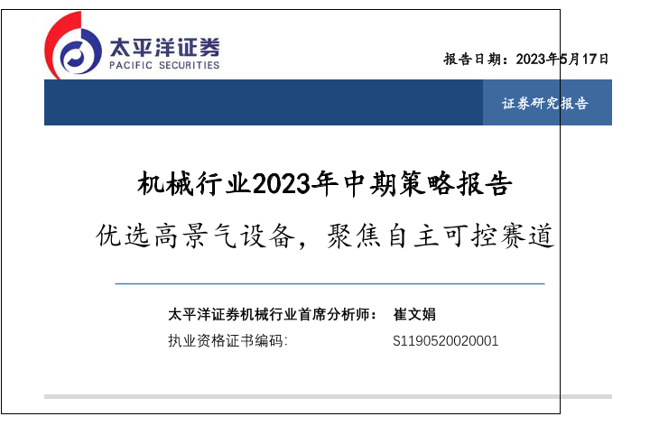 【太平洋证券】【20230517】机械行业2023中期策略报告:优选高景气设备,聚焦自主可控赛道-43页