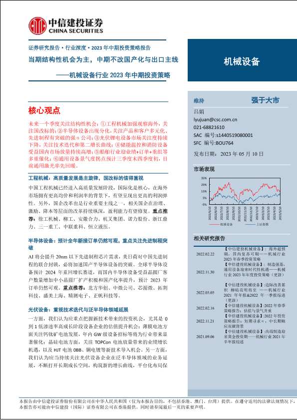 【中信建投证券】【20230510】机械设备行业2023年中期投资策略:当期结构性机会为主,中期不改国产化与出口主线-87页