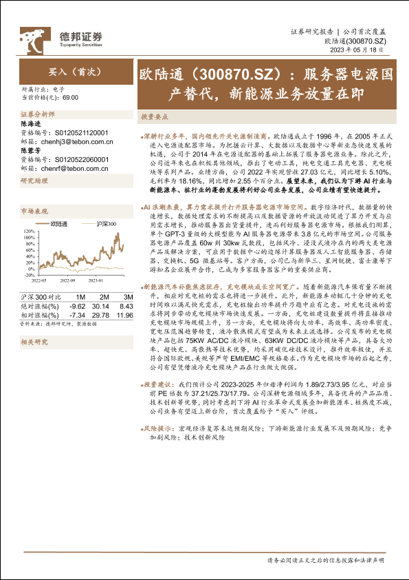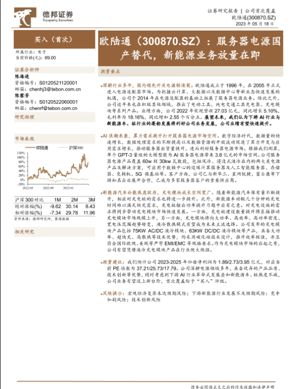 【德邦证券】【20230518】欧陆通(300870)服务器电源国产替代,新能源业务放量在即-23页