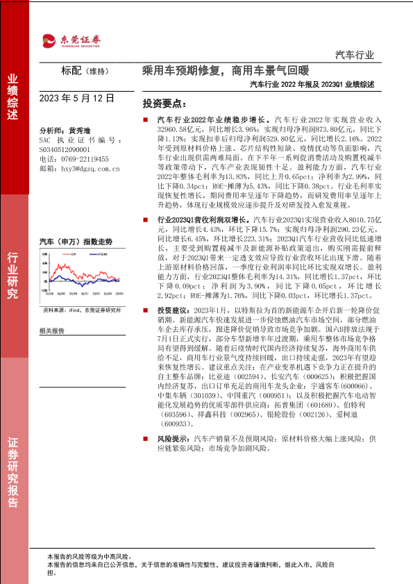 【东莞证券】【20230512】汽车行业2022年报及2023Q1业绩综述:乘用车预期修复,商用车景气回暖-24页