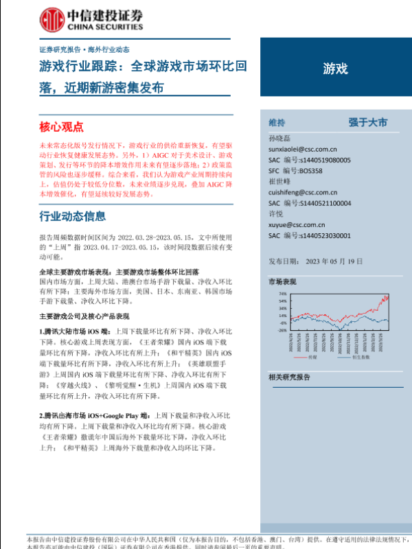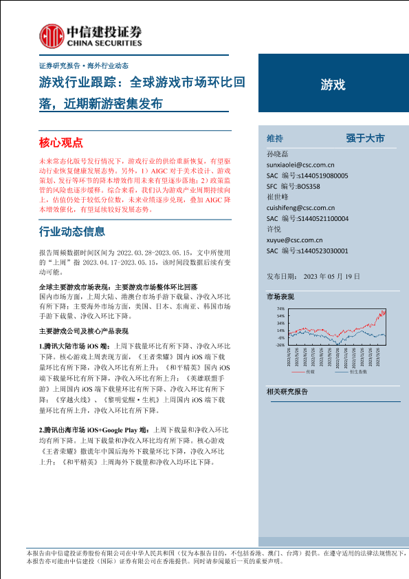 【中信建投证券】【20230519】游戏行业跟踪:全球游戏市场环比回落,近期新游密集发布-47页
