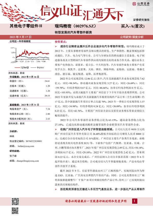【山西证券】【20230517】瑞玛精密(002976)转型发展的汽车零部件新贵-28页