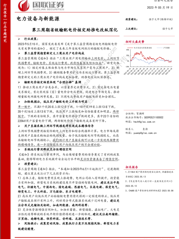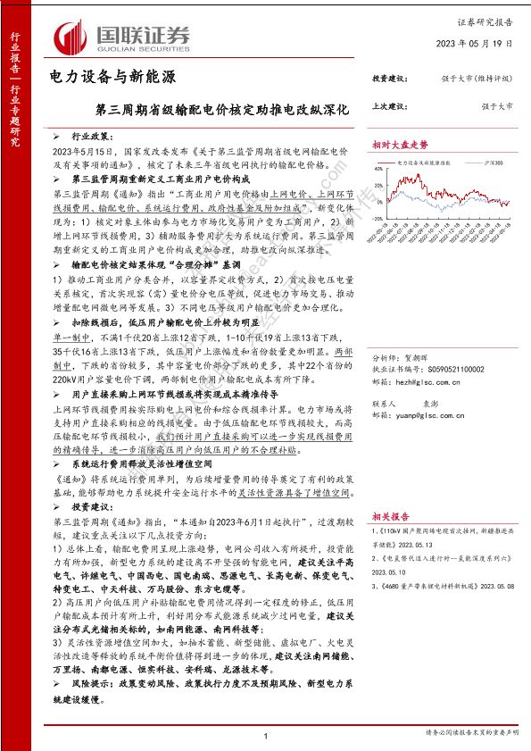 【国联证券】【20230519】电力设备与新能源行业专题研究:第三周期省级输配电价核定助推电改纵深化-25页