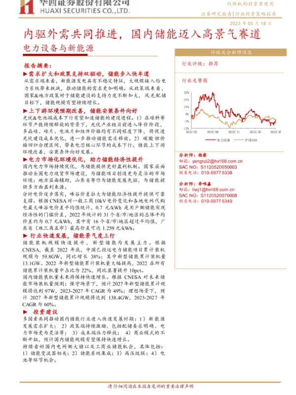 【华西证券】【20230518】电力设备与新能源行业投资策略报告:内驱外需共同推进,国内储能迈入高景气赛道-20页