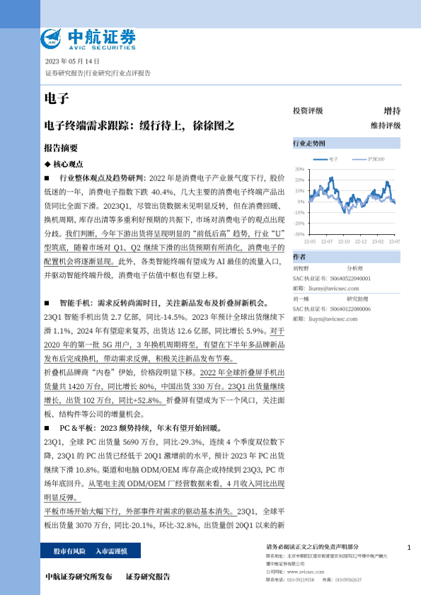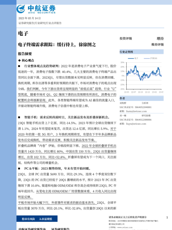 【中航证券】【20230514】电子终端需求跟踪:缓行待上,徐徐图之-18页