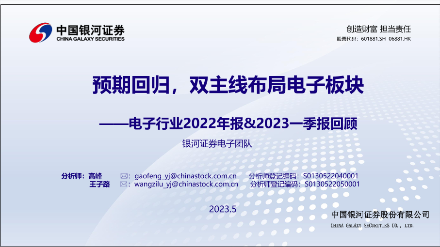【银河证券】【20230511】电子行业2022年报&2023一季报回顾:预期回归,双主线布局电子板块-46页