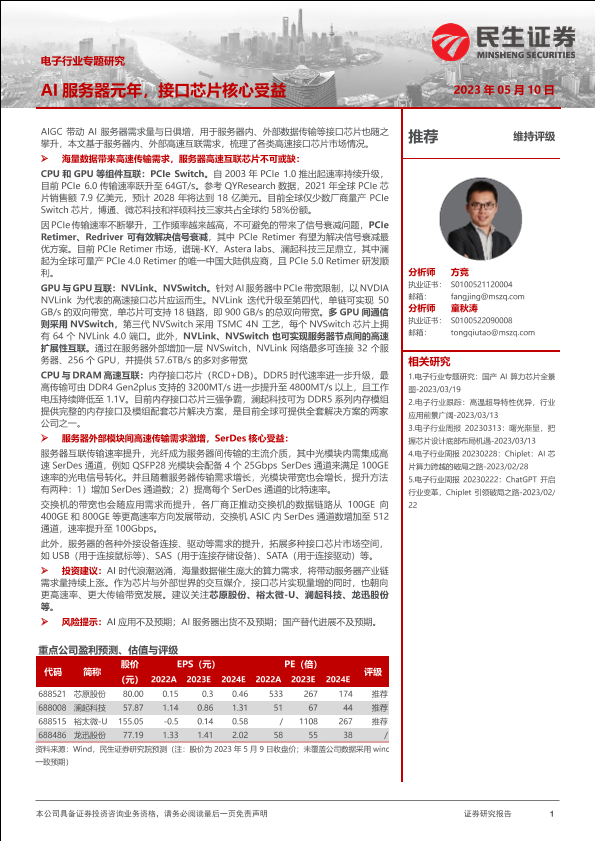 【民生证券】【20230510】电子行业专题研究:AI服务器元年,接口芯片核心受益-21页