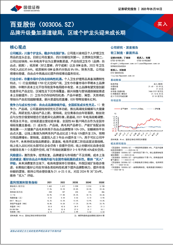 【国信证券】【20230518】百亚股份(003006)品牌升级叠加渠道破局,区域个护龙头迎来成长期-60页