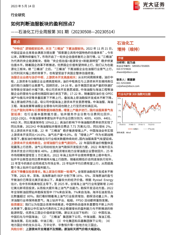 【光大证券】【20230514】石油化工行业周报第301期:如何判断油服板块的盈利拐点?-32页