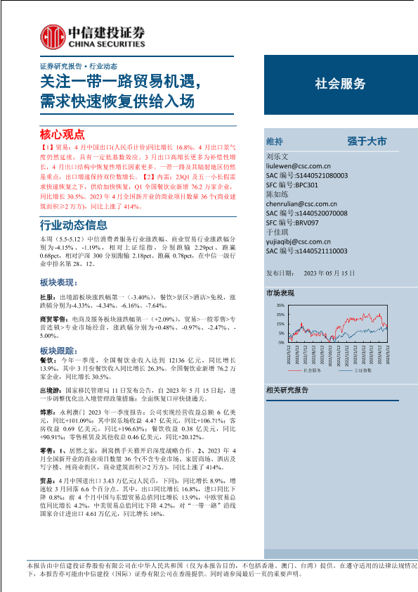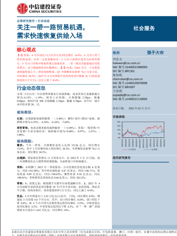 【中信建投证券】【20230515】社会服务行业:关注一带一路贸易机遇,需求快速恢复供给入场-27页