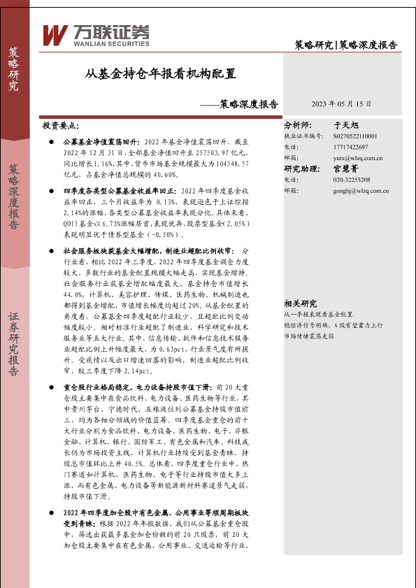 【万联证券】【20230515】策略深度报告:从基金持仓年报看机构配置-15页