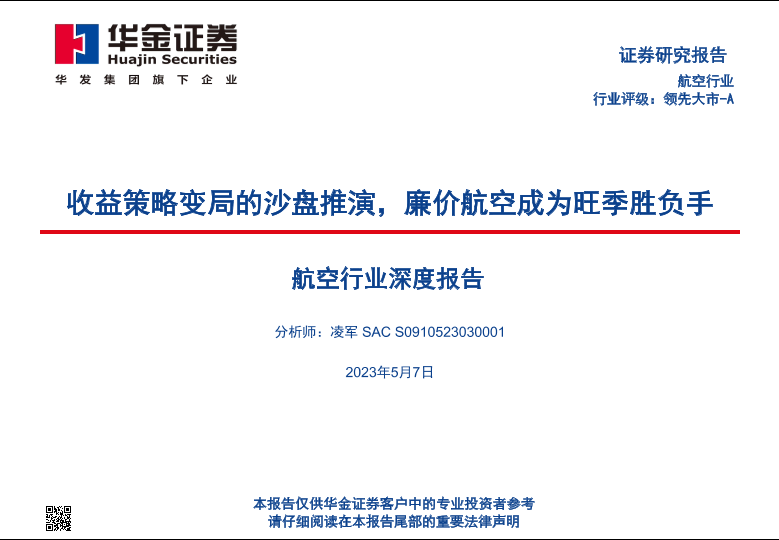 【华金证券】【20230507】航空行业深度报告:收益策略变局的沙盘推演,廉价航空成为旺季胜负手-66页