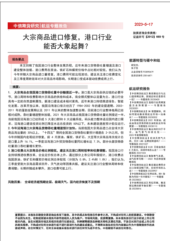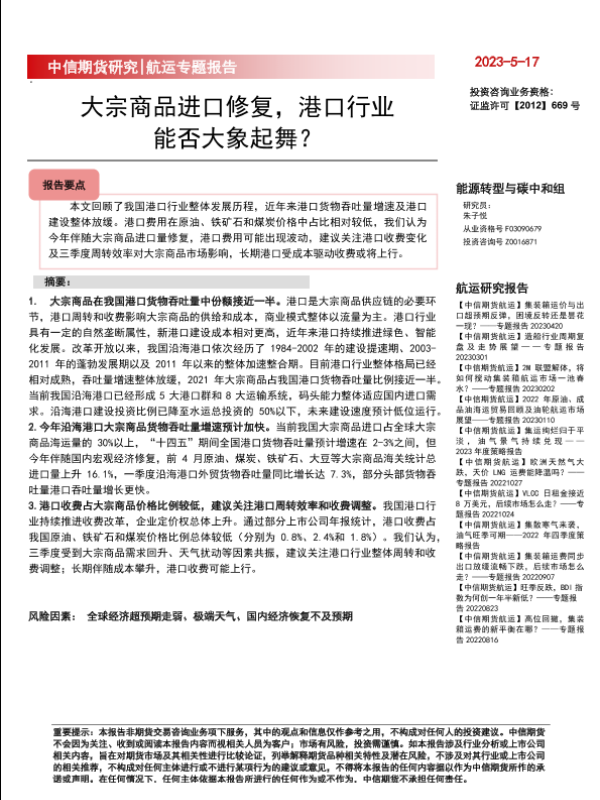 【中信期货】【20230517】航运专题报告:大宗商品进口修复,港口行业能否大象起舞?-15页