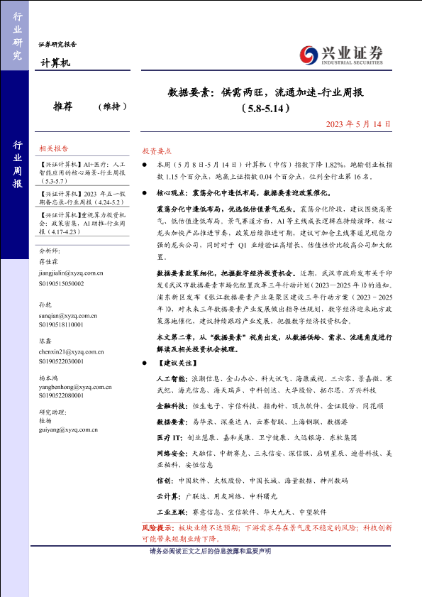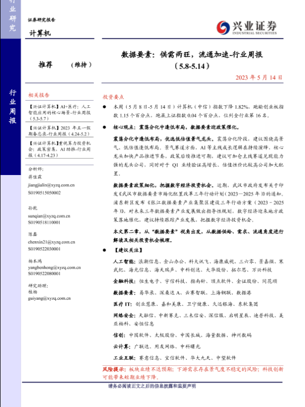 【兴业证券】【20230514】数据要素:供需两旺,流通加速-行业周报 (5.8-5.14)-23页