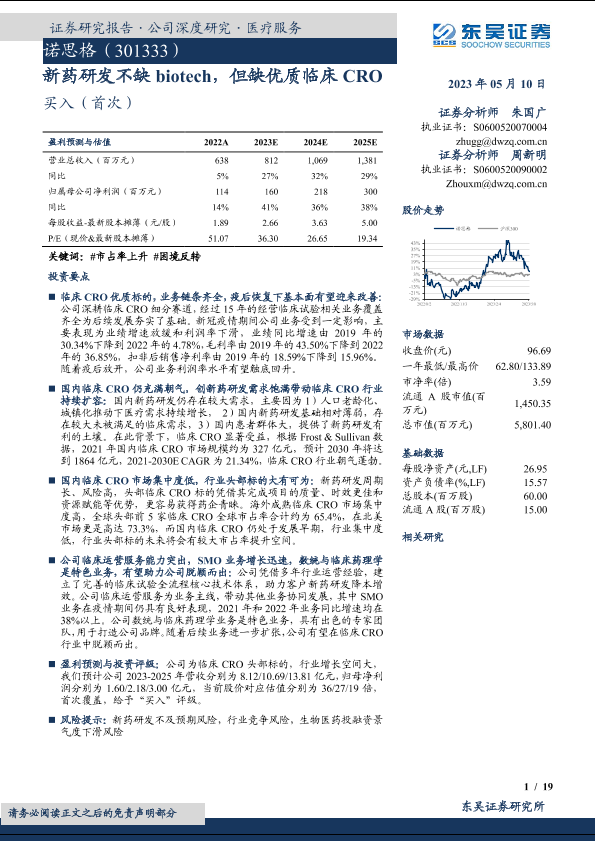 【东吴证券】【20230510】诺思格301333.SZ新药研发不缺biotech,但缺优质临床CRO-19页
