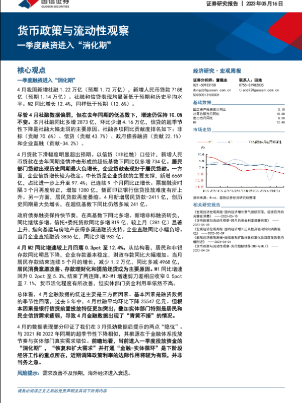 【国信证券】【20230516】货币政策与流动性观察:一季度融资进入“消化期”-19页