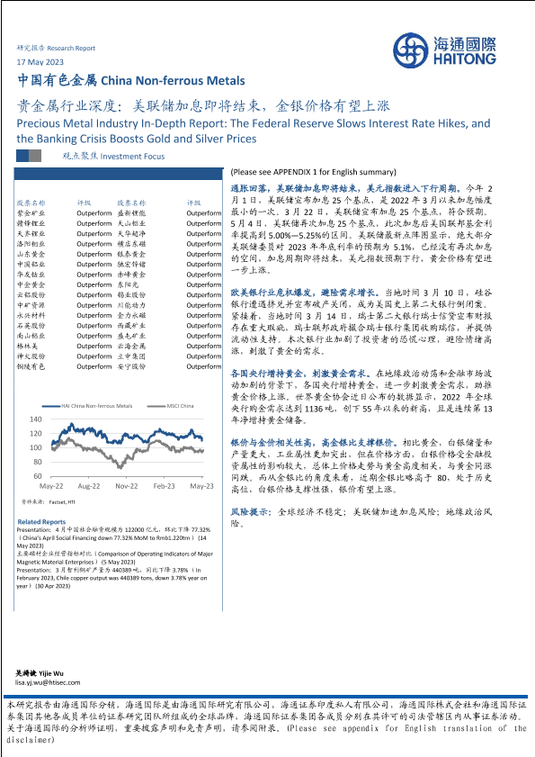 【海通国际】【20230518】贵金属行业深度:美联储加息即将结束,金银价格有望上涨-23页