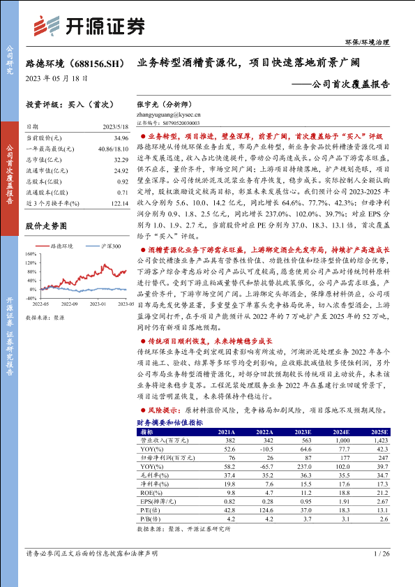 【开源证券】【20230519】路德环境公司首次覆盖报告 业务转型酒糟资源化,项目快速落地前景广阔-26页
