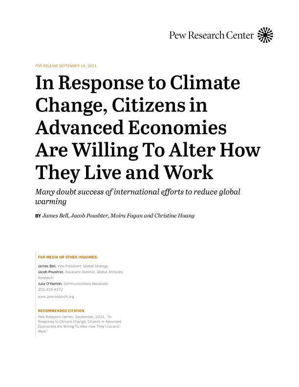 【Pew Research Center】【20210914】In Response to Climate Change, Citizens in Advanced Economies Are Willing To Alter How They Live and Work-42页