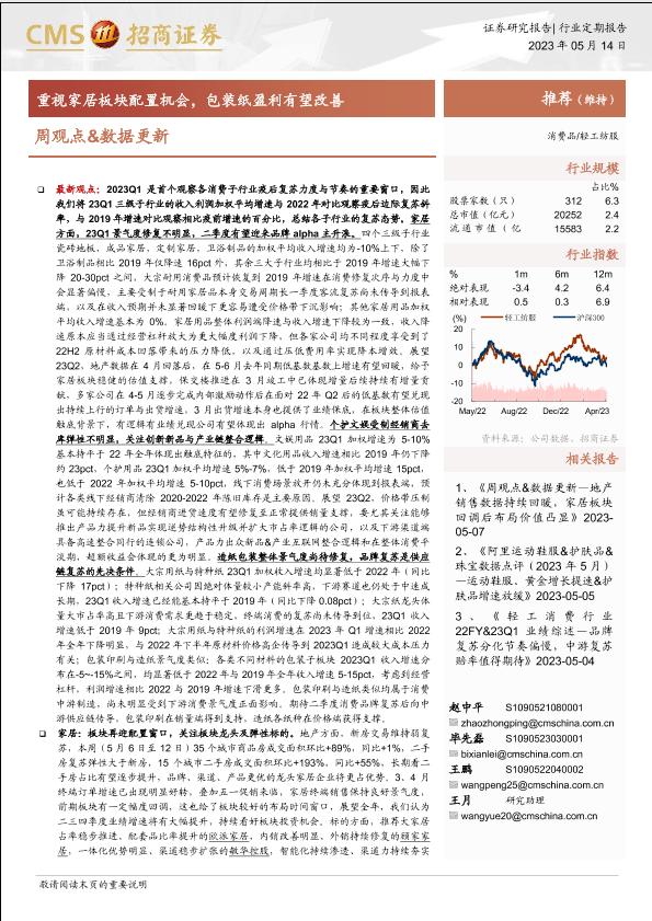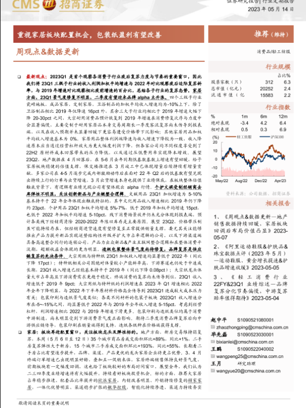 【海通证券】【20230514】轻工纺服周观点&数据更新:重视家居板块配置机会,包装纸盈利有望改善-27页