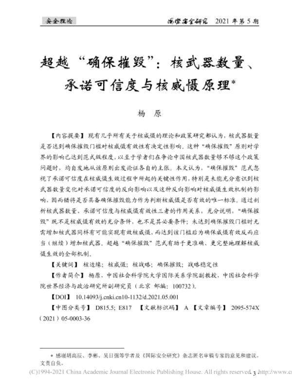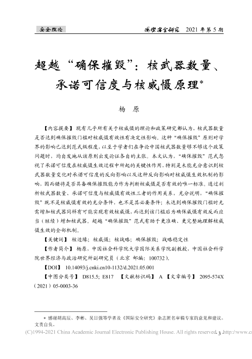 【中国社会科学院大学国际关系学院】【20210501】超越“确保摧毁”:核武器数量、承诺可信度与核威慑原理-37页