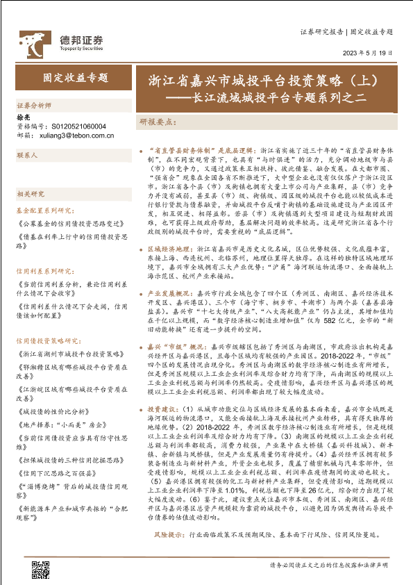 【德邦证券】【20230519】长江流域城投平台专题系列之二:浙江省嘉兴市城投平台投资策略(上)-21页