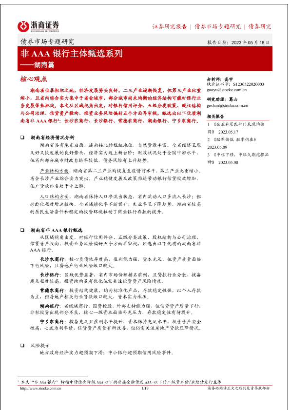 【浙商证券】【20230518】非AAA银行主体甄选系列:湖南篇-19页