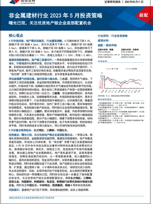 【国信证券】【20230511】非金属建材行业2023年5月投资策略:曙光已现,关注优质地产链企业底部配置机会-32页