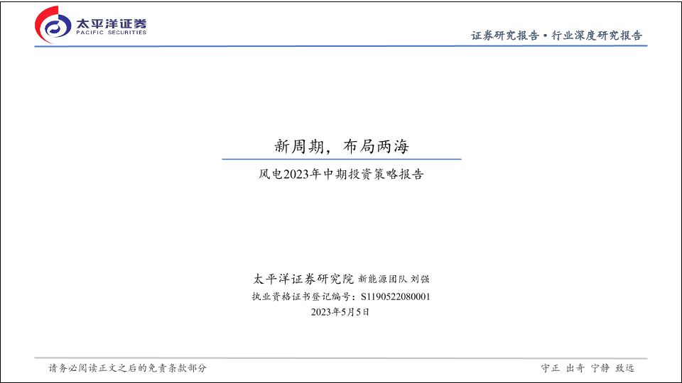 【太平洋证券】【20230505】风电行业2023年中期投资策略报告:新周期,布局两海-35页