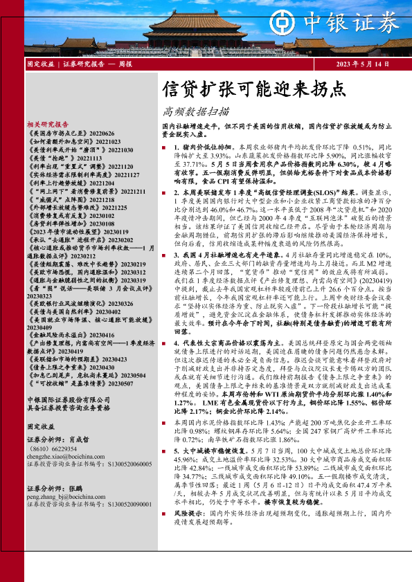 【中银证券】【20230514】高频数据扫描:信贷扩张可能迎来拐点-22页