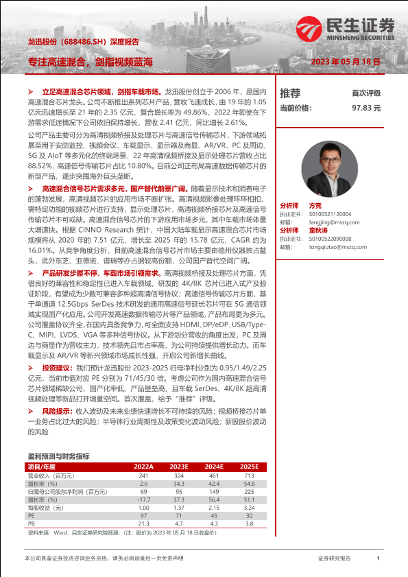 【民生证券】【20230518】龙迅股份(688486)深度报告:专注高速混合,剑指视频蓝海-38页
