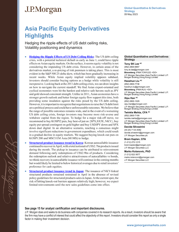 【J.P. Morgan】【20230509】JPMorgan-Asia Pacific Equity Derivatives Highlights Hedging the ripple effects of US debt ceiling risks-20页
