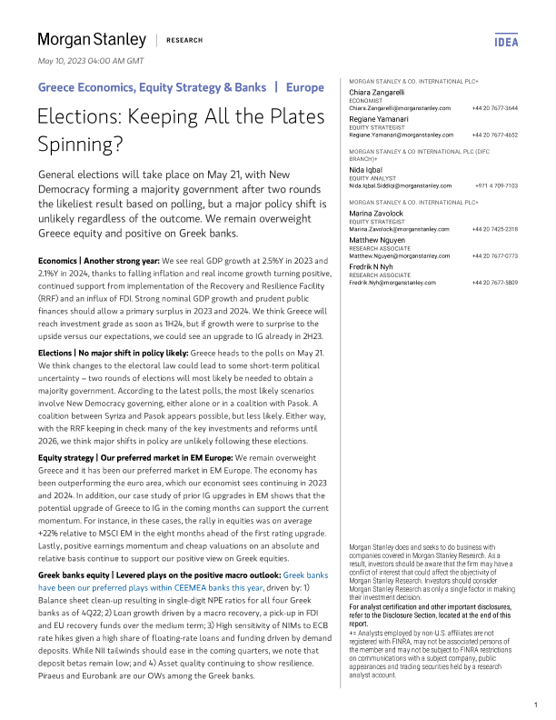 【Morgan Stanley】【20230510】Greece Economics, Equity Strategy & Banks Elections Keeping All the Plates Spinning?-30页