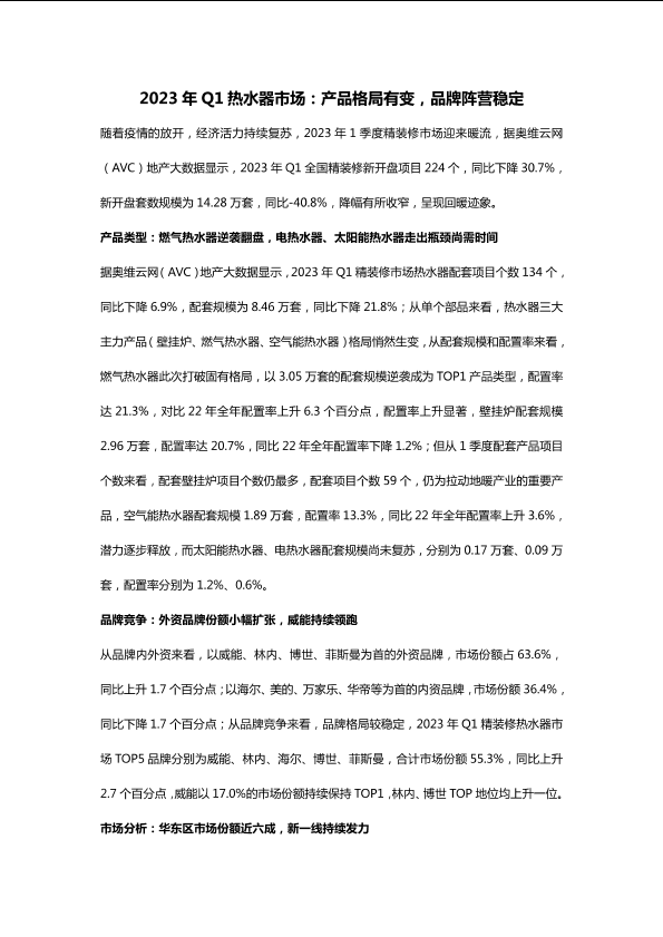 【奥维云网(AVC)】【20230101】2023年Q1热水器市场:产品格局有变,品牌阵营稳定-4页