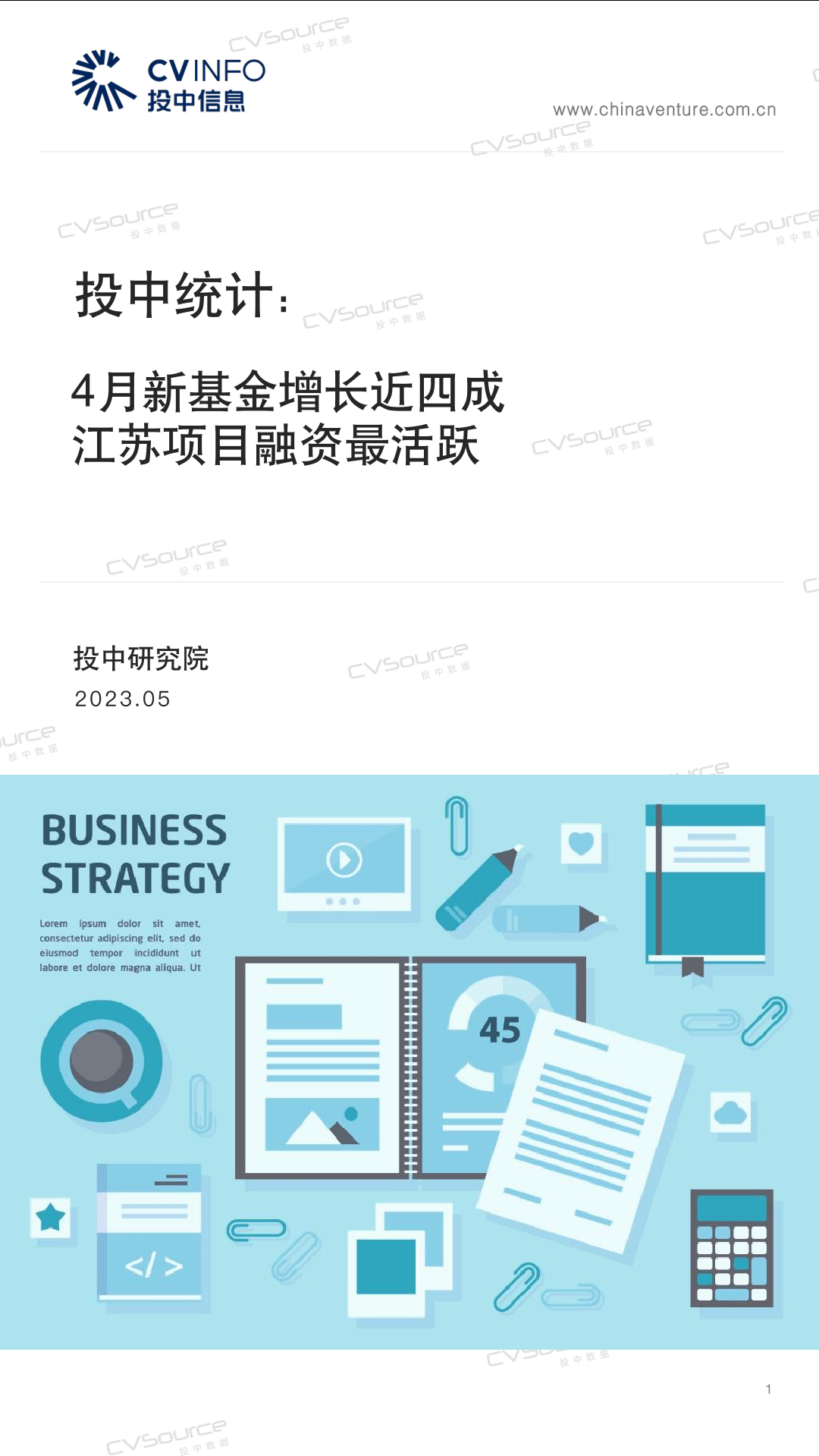 【投中研究院】【202305】投中统计:4月新基金环比上升近五成,江苏项目融资最活跃-16页