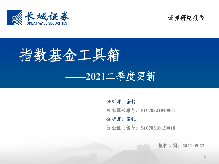 【长城证券】【20210922】2021二季度更新:指数基金工具箱-20页