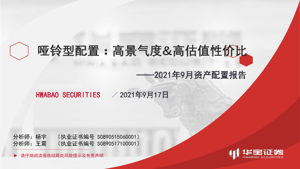 【华宝证券】【20210917】2021年9月资产配置报告:哑铃型配置,高景气度&高估值性价比-49页
