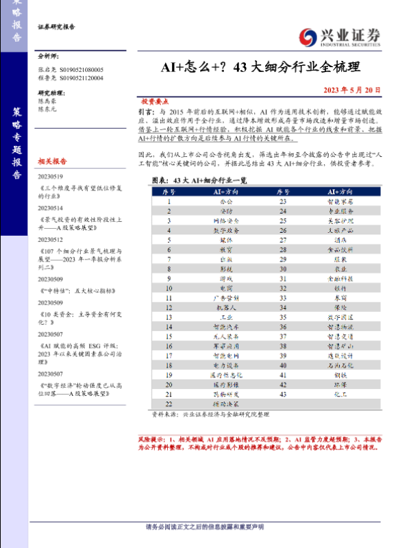 【兴业证券】【20230520】AI+怎么+?43大细分行业全梳理-40页
