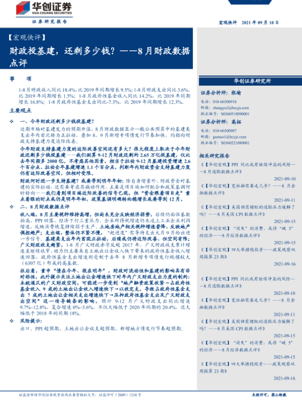 【华创证券】【20210918】8月财政数据点评:财政投基建,还剩多少钱?-16页