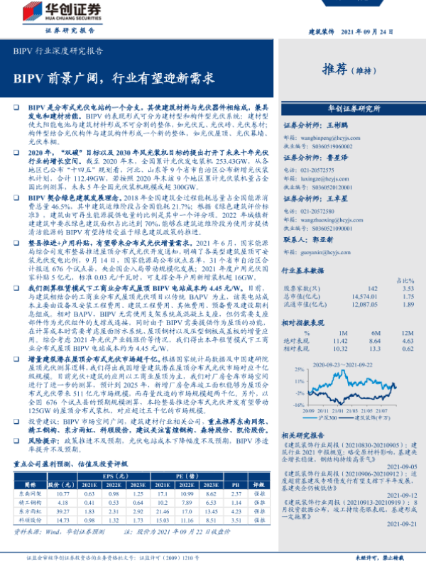 【华创证券】【20210924】BIPV行业深度研究报告:BIPV前景广阔,行业有望迎新需求-32页