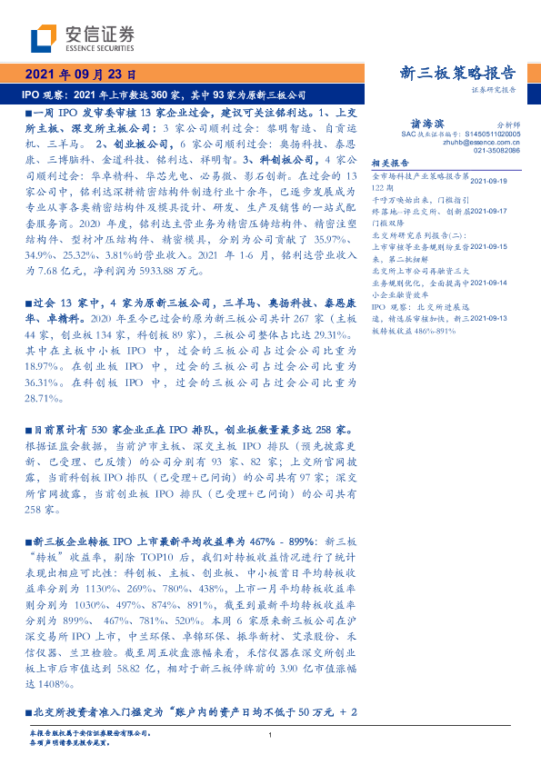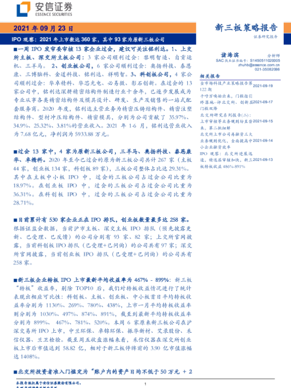 【安信证券】【20210923】IPO观察:2021年上市数达360家,其中93家为原新三板公司-19页