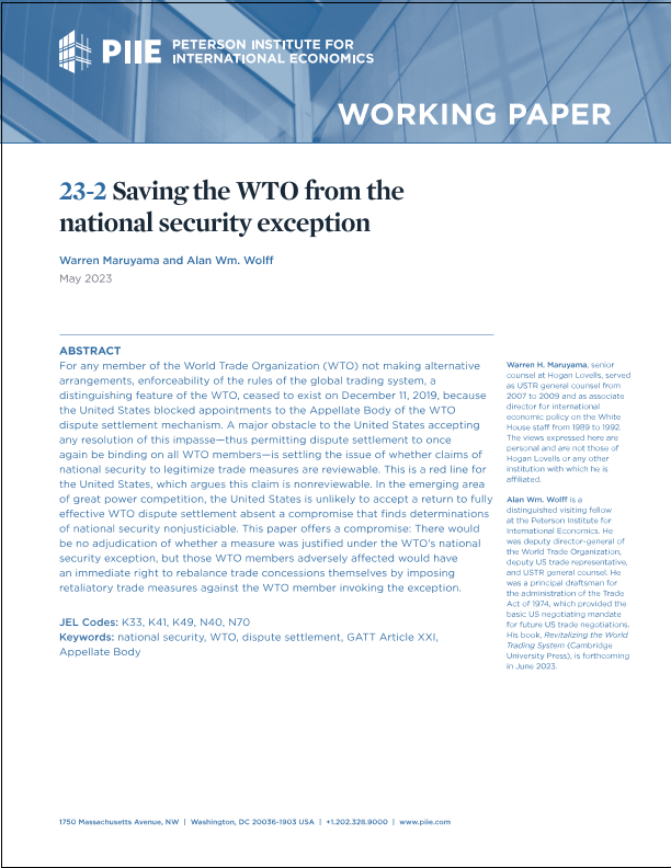 【彼得森经济研究所】【202305】Saving the WTO from the national security exception-23页