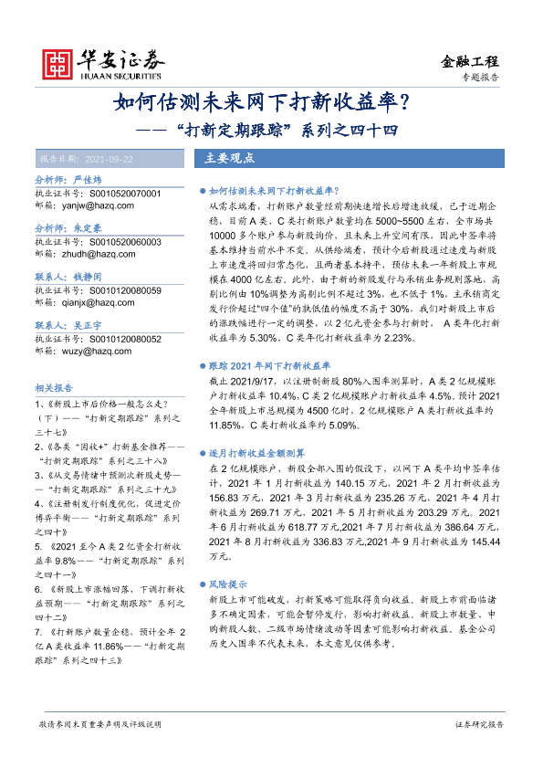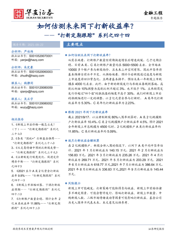 【华安证券】【20210922】“打新定期跟踪”系列之四十四:如何估测未来网下打新收益率?-27页