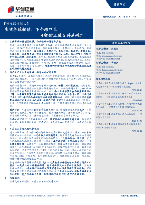 【华创证券】【20210917】生猪养殖转债,下个路口见 ——可转债正股百科系列二-21页