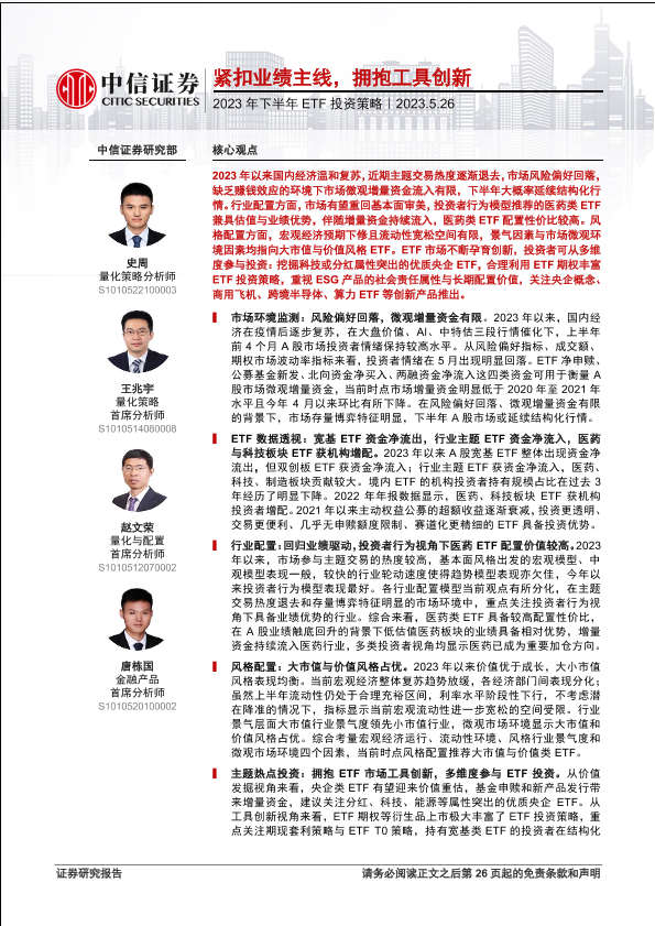 【中信证券】【20230526】2023年下半年ETF投资策略:紧扣业绩主线,拥抱工具创新-29页